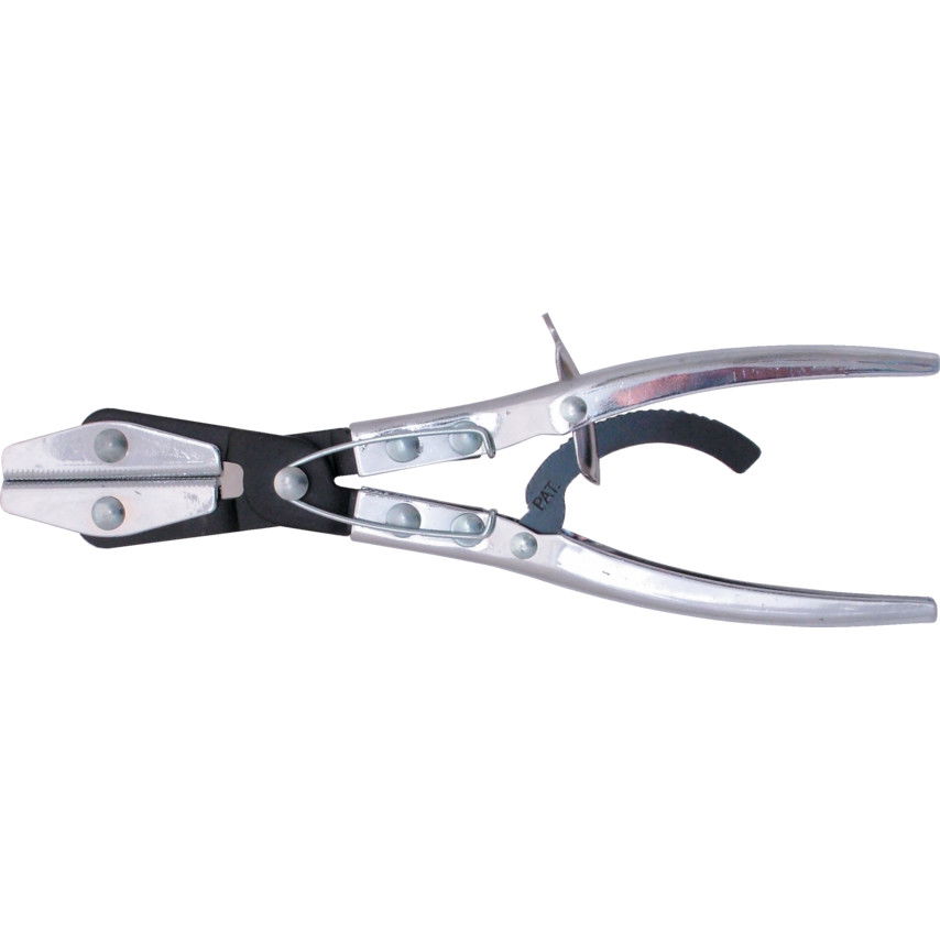 Flexibilis fékvezetékek, üzemanyag-vezetékek, vákuumtömlők és más folyadékvezetékek elszorítására. Lehetővé teszi a javítás elvégzését anélkül, hogy a rendszert le kellene üríteni. Az erős, rovátkolt pofa élei kiváló szorítóerőt nyújtanak, de nem okoznak sérülést a tömlőn. A finomállítású racsnis mechanika lehetővé teszi a tömlő teljes vagy részleges elzárását. Acél konstrukció krómozott, korrózióálló kivitelben.