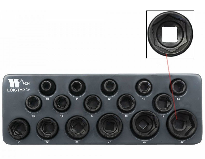 Welzh Werkzeug 7024-WW 1/2"-os 6-lapú Lok-Typ gépi dugókulcs fej készlet, normál, 16 részes