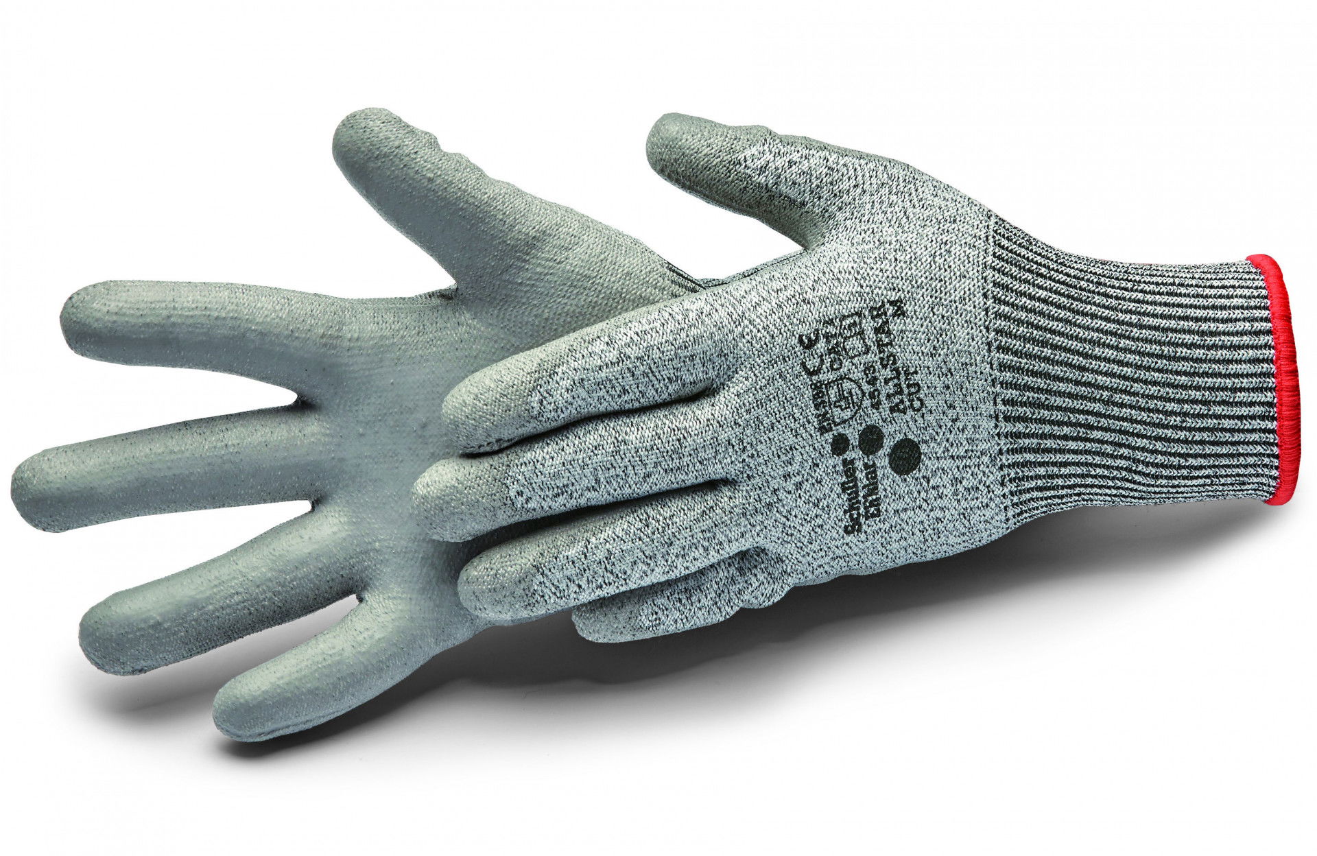 Univerzális kesztyű PU bevonattal, vágásbiztos (5-ös szint), magas kopásállósággal, valamint víztaszító képességgel.