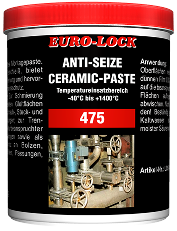 A LOS 475 egy fehér, fémmentes szerelőpaszta. Csökkenti a kopást, megbízható elválasztást és kiváló korrózióvédelmet biztosít. Alkalmazási területek:Mindenféle erősen igénybevett csúszófelületek, csavaros, dugós és bajonettes csatlakozások kenésére, magas hőmérsékletnek kitett menetes csatlakozások szétválasztására, valamintcsavarok, csapok, illesztések, tengelyek stb. korrózióvédelmére. Tulajdonságok:- megakadályozza a rozsdásodást- véd a rozsda és a tribokorrózió ellen- jó nyomáselnyelő képesség- jó ellenállás a vegyi anyagokkal és oldószerekkel szemben- jó tömítés a maró gázokkal és folyadékokkal szemben- jó vízállóság- véd a korrózió ellen- jó elválasztó hatás Alkalmazás:Vékony rétegben, egyenletesen kenje fel az igénybevett szálakra és felületekre. Törölje le a felesleget.Ne használja úgy, mint a zsírt! Ellenáll a hideg és meleg víznek, valamint a legtöbb savnak és lúgnak. Műszaki adatok:Alapolaj: PAOSűrítőanyag: szervetlen anyagokMegnevezés: ISO-L-XCGEB1Szín: fehérSűrűség 20°C-on: 1100 kg/m³NLGI konzisztenciaosztály: 1Megnevezés: MPF1-30Csöpögéspont: nincsHőmérséklet-tartomány: -30°C - +1400°C