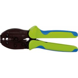 Áttételes krimpelő fogó, PEW 9, RENNSTEIG | Langbeschreibung: Áttételes saruzó fogó, forrasztás nélküli villamos csatlakozásokhoz. | Materialbeschreibung: különleges minoségu króm-vanádium elektroacélolajban edzett