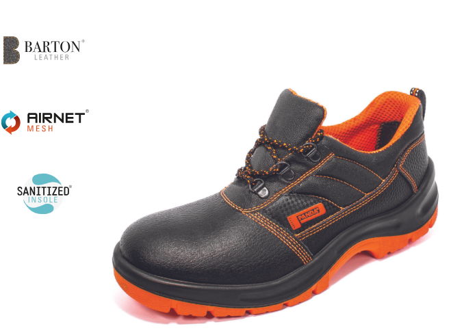 • biztonsági félcipő acél lábujjvédővel • antisztatikus, dupla sűrűségű poliuretánból készült külső talp, kopás- és olajálló, csúszásgátló tulajdonságokkal • természetes Barton bőr felsőrész • légáteresztő Airnet hálós belső bélés • ez a modell a Basic Neos kollekció tagja • tömeg: 500 g