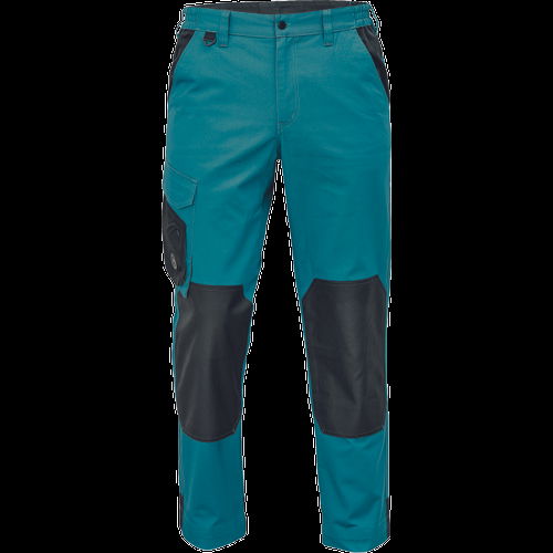 • munkanadrág pamutgazdag anyagból • modern szabással • megerősített térdrész térdvédőtartó zsebbel • 2 zseb elöl • 1 többfunkciós zseb • tépőzáras hátsó zseb • rugalmas derék • D-gyűrű • leengedhető szárak