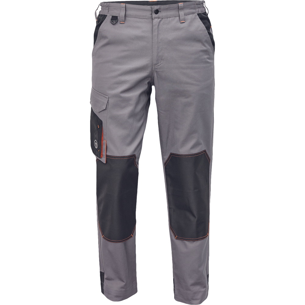 • munkanadrág pamutgazdag anyagból • modern szabással • megerősített térdrész térdvédőtartó zsebbel • 2 zseb elöl • 1 többfunkciós zseb • tépőzáras hátsó zseb • rugalmas derék • D-gyűrű • leengedhető szárak
