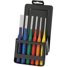 Csapszegkiütő készlet, színkódolt, fém kazettában 6 részes, 3-10 mm