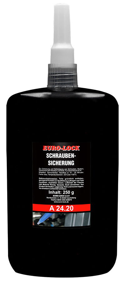 Az A 24.20 egy termék csavarok és hidraulikus csatlakozások rögzítésére rezgés és ütés esetén.Normál szétszerelhetőség. Nagymértékben ellenáll a hőnek, korróziónak, rezgésnek, víznek, gázoknak, olajnak, szénhidrogéneknek és számos vegyi anyagnak. Termék: Anaerob fémragasztóKémiai bázisú: metakrilát-észterSzín: kékViszkozitás: 1000-1500 mPasSűrűség(25°C): 1,05 g/mlLobbanáspont: 100°CKeményedési rendszer: AnaerobKézi szilárdság: 10-20 percFunkcionális szilárdság: 1-3 óraVégső szilárdság: 5-10 óraNyomónyírószilárdság: 8-12 N/mm²Szakítónyomaték (ISO 10964): 14-18 N.mTartós nyomaték (ISO 10964): 5-8 N.mHőmérséklet-tartomány: -55°C és +150°C közöttMenetes csatlakozások: M24-igRagasztási hézag: Legfeljebb 0,20 mmSzavatossági idő: 1 évA vizsgálati értékek acél/acél (szerkezeti acél) csavarkötésre vonatkoznak.