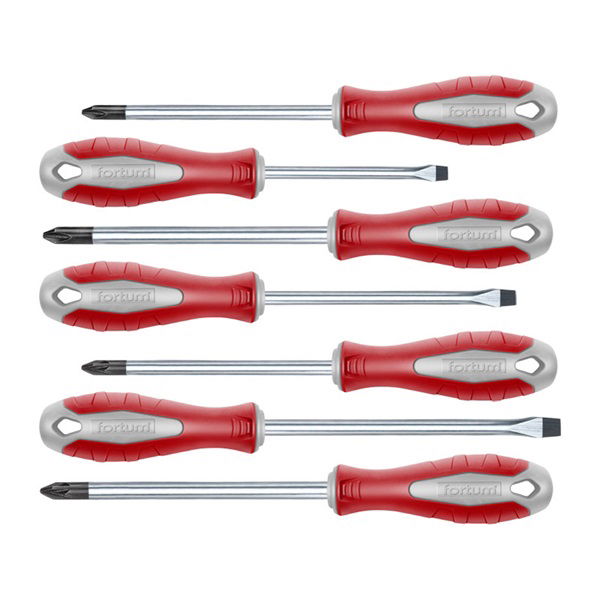 csavarhúzó klt., 7db; lapos: 3×75, 5×100, 6×125mm, PH1×100, PH2×125, PZ1×100, PZ2×125, CV. mágneses, papír doboz