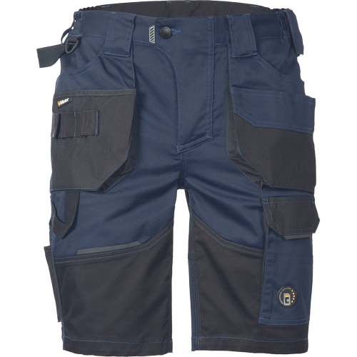 • férfi munka rövidnadrág rugalmas Trifibetex® anyagból • ergonomikus szabás • alacsony, gumírozott derék • tartós tripla varrás a szárakon és az üleprészen • tágas multifunkcionális első zsebek szerszámtartó pánttal • 2 hátsó zseb Oxford erősítéssel • a száron telefontartó zseb tépőzáras zsebfedővel • külön zsebek vonalzónak, késnek, kalapácsnak • egyedi kivitelű repülőzseb • D-gyűrű • szerszámtartó hurok a derékpánton • fényvisszavető részletek