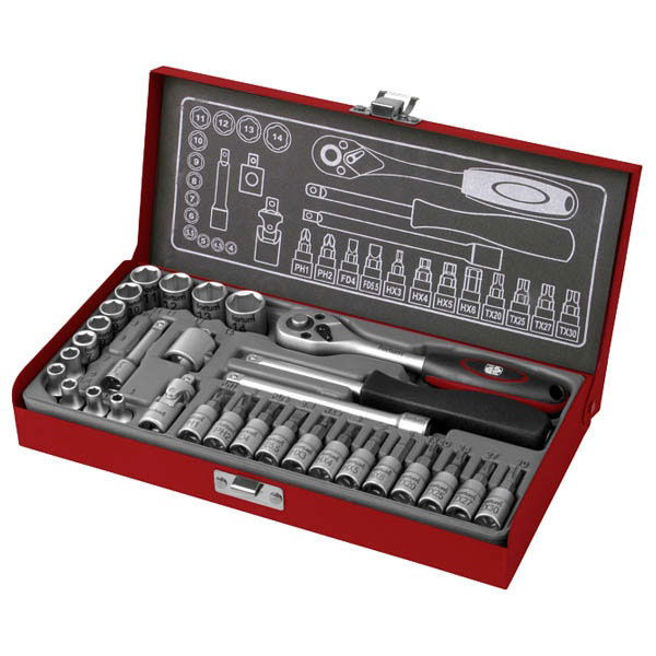dugókulcs és bitdugófej klt. 1/4", 31db, 61CrV5; mattkróm FORTUM