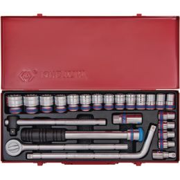 Dugókulcs készlet, 1/2", fém kazetta, 10–32 mm, 24 részes, 6 szög, KING TONY | Langbeschreibung: Dugókulcs készlet, fém kofferben, hatlapfeju csavarokhoz és anyákhoz. | Materialbeschreibung: