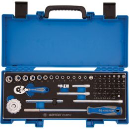 Dugókulcs készlet + bitek 1/4" ( fém kazetta ) 4-14 mm, FL, PH, PZ, SW, TX, TXBO, 55 részes