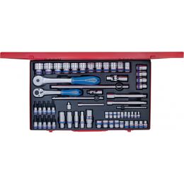 Dugókulcs készlet, fém kazettában, 1/4+3/8"+1/2" 8-32 mm, 62 részes, 12 szög, 476x282x57mm