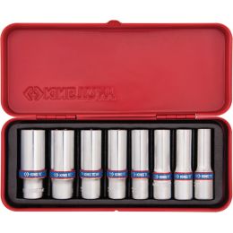 Dugókulcs készlet, hosszú, 6 szögu, fém kazettában M10-M19 8 részes 3/8"