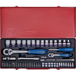 Dugókulcs készlet, muanyag kofferben 1/4"+1/2" 58 részes