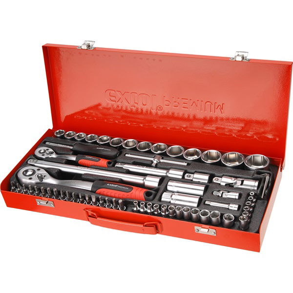 dugókulcs klt., CV., racsnis 45fog ; 1/4" és 1/2", 65db, dugófejek (4-32mm), bitek, fém doboz