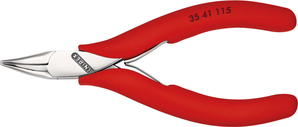 Elektronikai félkerekcsőrű fogó, hajlított 115 mm, 45°-os, műanyag nyél