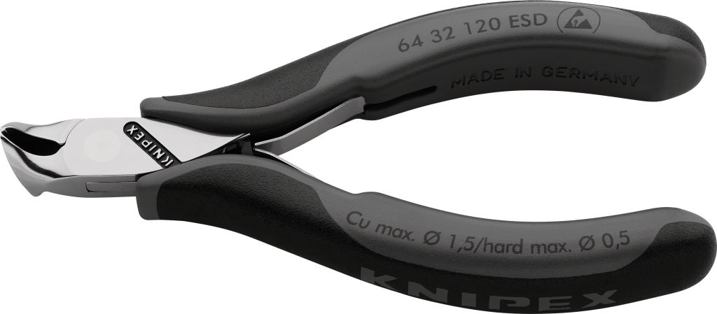 Elektronikai homlokcsípő fogó, ferde vágóél, ESD 120 mm/0,5-1,5mm ,15°-os ferde él