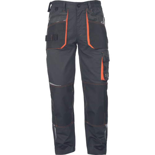 • férfi munkanadrág, rendkívül tartós rugalmas anyagból • elasztikus derékkal • multifunkcionális zsebek • Oxford 600D megerősített térdzsebek térdvédők behelyezéséhez • nyomtatott szegmensekre bontott fényvisszavető részletek • állítható szárhossz