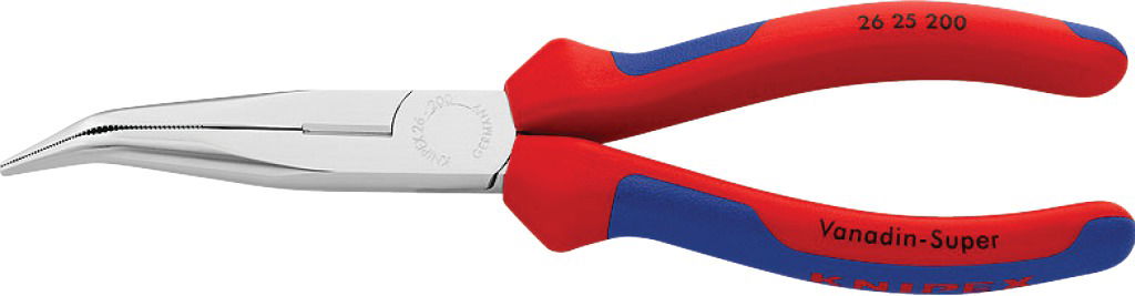 Félkerekcsőrű fogó hajlított, króm.fej, kétk. ny 200 mm, 40°-os, vágóéllel