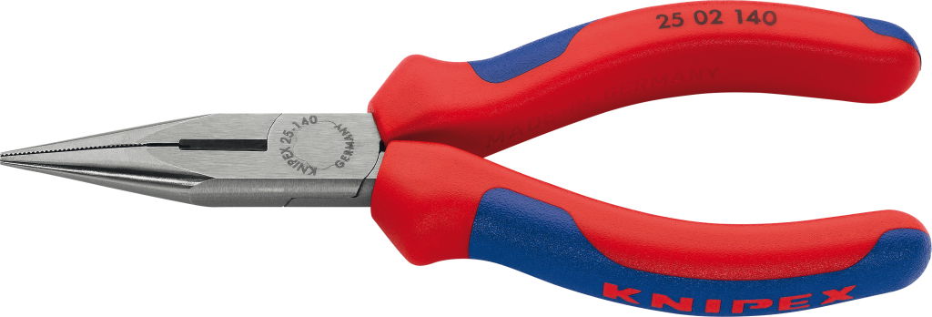 Félkerekcsőrű ( rádiós ) fogó, kétkomponensű nyél 160 mm, vágóéllel, polírozott fej