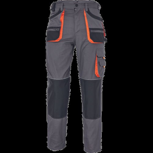 • férfi munkanadrág • 6 multifunkciós zseb • OXFORD poliészter erősítésekkel az igénybevett részeken • térdvédő behelyezésére alkalmas, megerősített térdrész • leengedhető szárak • anyaga 100% pamut, 235g/m2