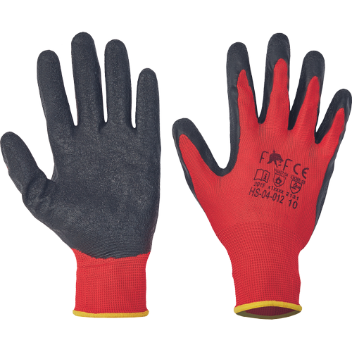 • kötött PES kesztyű • tenyéren fekete latex mártással • rugalmas mandzsetta