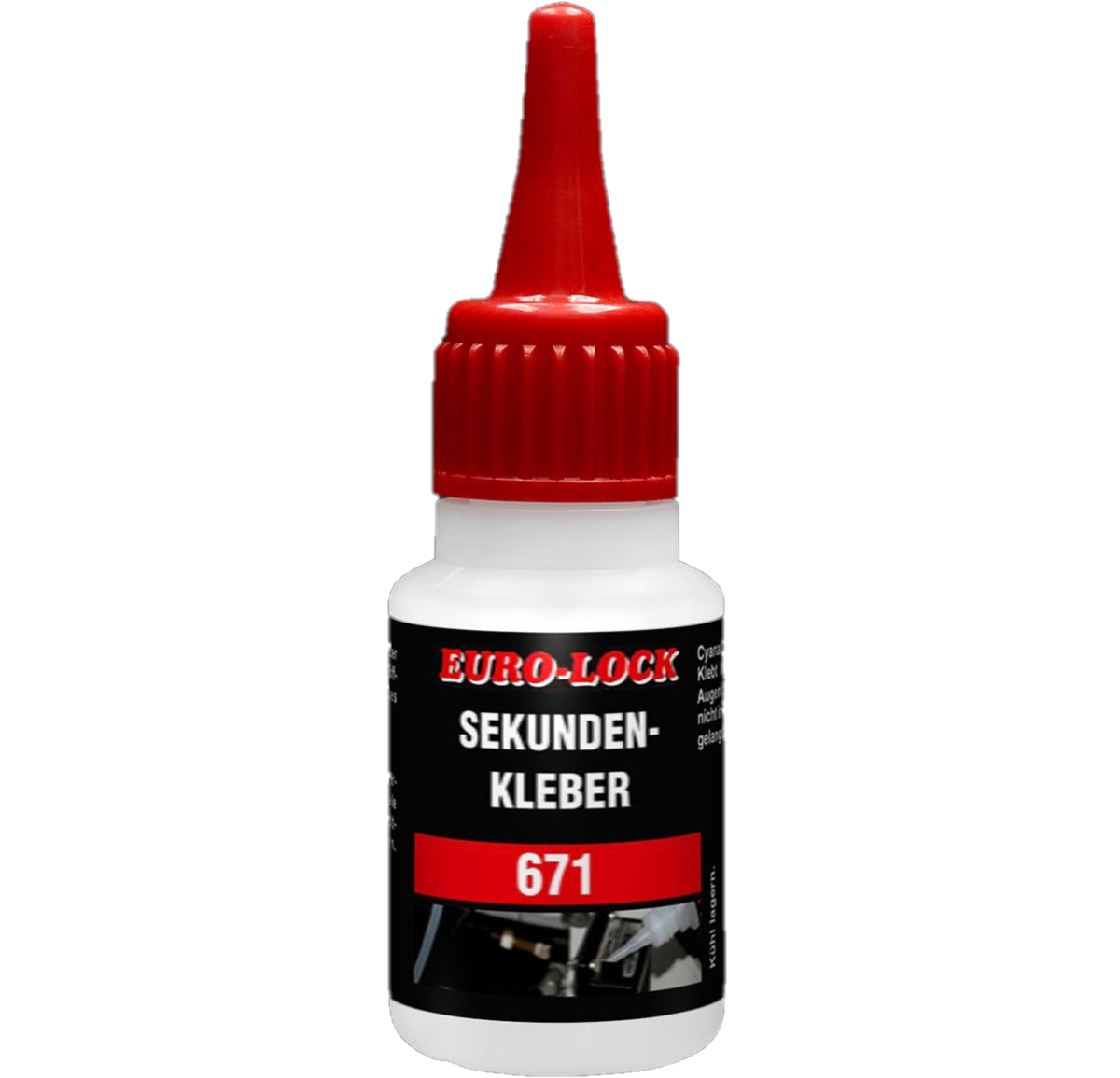 Az F 671 egy rugalmas cianakrilát ragasztó, nagy hézagkitöltő képességgel. Tulajdonságok:Formája: színtelen folyadékKémiai alapanyag: etil-cianoakrilátHézagkitöltés: porózus anyagok: kb. 0,25 mm, nem porózus anyagok: kb. 0,1 mm.Szavatossági idő: 6 hónap szobahőmérsékleten, 12 hónap +2°C - +10°C-on.Fajlagos sűrűség (25°C): 1,06 g/lViszkozitás (25°C): 1000-2000 mPas Végső kikeményedés: 12 óra! Ragasztási sebesség:EPDM: 7 sec.Neoprén: 7 sec.Nitril gumi: 7 sec.Balsafa: 10 mp.ABS: 1-2 mp.Polikarbonát: 15-25 mp.Acél: 25-40 mp. Nyírószilárdság:Acél: 15 N/mm²Alumínium: 10 N/mm²Nitrilgumi: 10 N/mm²Polikarbonát: 6 N/mm²ABS: 6-10 N/mm²Szakítószilárdság:EPDM: 5 N/mm²Neoprén: 2,5 N/mm²Nitrilgumi: 5 N/mm² AlkalmazásA cianakrilát ragasztókat cseppenként kell alkalmazni cseppentős flakonból vagy adagolóból. A felhordás után a ragasztandó felületeket enyhe érintkezési nyomás alatt illessze össze. A ragasztó polimerizációja néhány másodperc múlva megkezdődik, és a munkadarabok azonnal megmunkálhatók. Az optimális környezetihőmérséklet a ragasztáshoz +20° és +25°C között van, 50-60% relatív páratartalom mellett.Nagy hidegben a kikeményedés sebessége nagyon lassú lehet. A HPDE tartályok nem biztosítanak teljes zárást. A terméket más vegyszerektől és nedvességforrásoktól távol kell tárolni. Erős fénynek való kitettség kifehérítheti a termékeket.! A felületeket meg kell tisztítani az olajtól, zsírtól és szennyeződésektől, javasoljuk aLos 2000ipari tisztító használatát!
