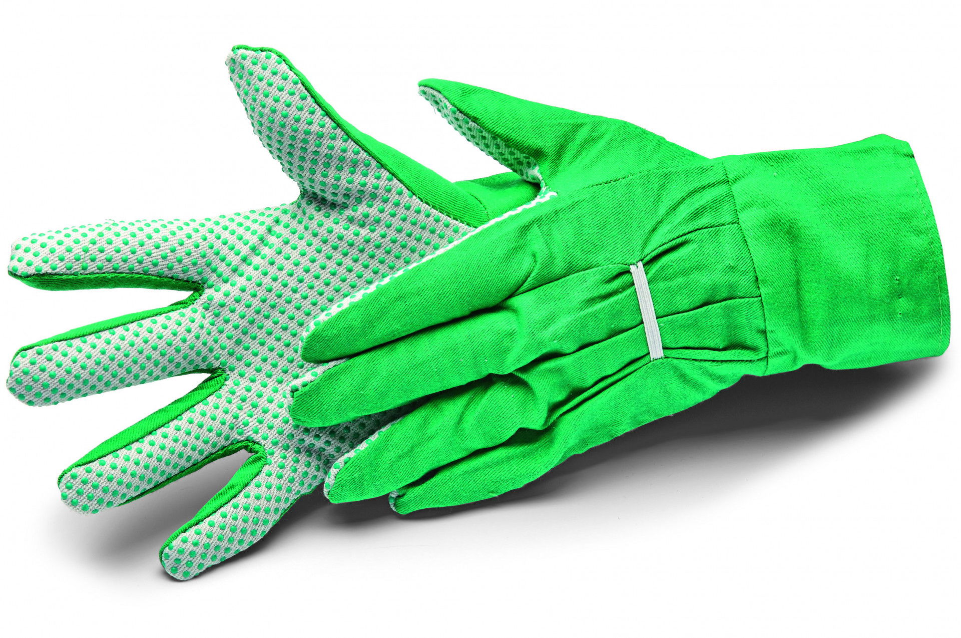 • Pamut kerti kesztyű pettyekkel a tenyéroldalon és gumiszalaggal a kézháton.