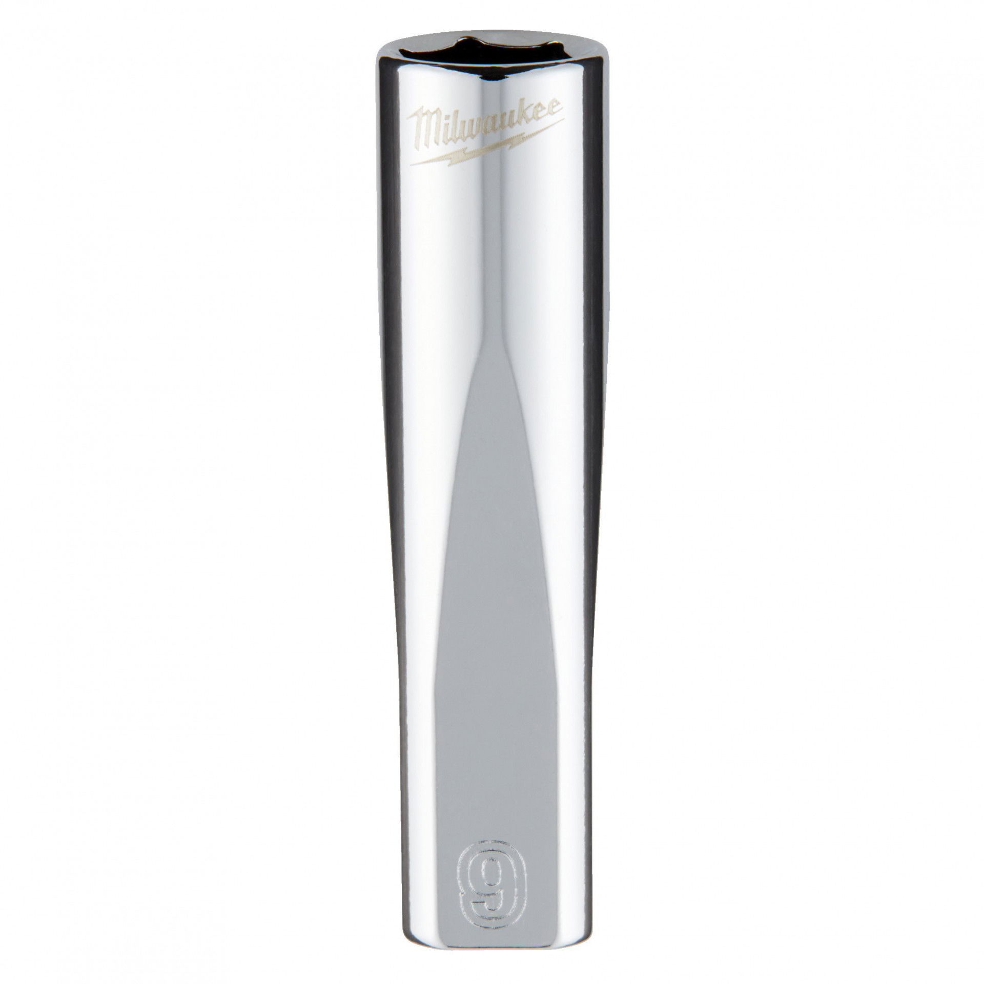 Milwaukee FOUR FLAT™ oldalú 1/4"-os dugókulcs fej, hosszú, 6-lapú, 9 mm