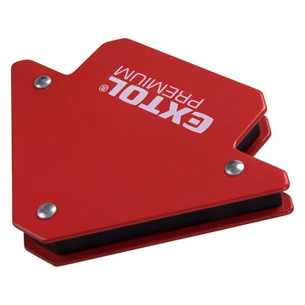 Állandó mágnes, ferrit. Nyíl forma alakzat, szögek: 45° - 90°-135°. Méretek: 120×83×14mm. Max. összeszorító erő: 11 kg