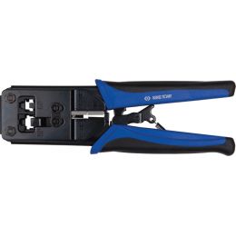 Krimpelo fogó telefon csatlakozóhoz, KING TONY | Langbeschreibung: Lapos árnyékolatlan telefonkábelek vágásához és csupaszításához, Western dugók és UTP csatlakozók préseléséhez.