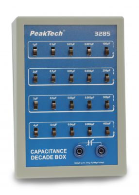 Kapacitásboksz.A készülék kitűnik hosszú ideig tartó stabilitása által, a képzés, karbantartás, gyártás tesztelésének. A műszer a kutatás és fejlesztés területére lett tervezve. A borítása ütésálló ABS műanyagból készült, a kimeneti értékek könnyű összeadásához és kivonásához tolókapcsolót alkalmaz, valamint 4 mm-es biztonsági aljzatot a biztonságos kapcsoláshoz. Műszaki adatok: Tartomány 100 pF ...11111 uF (100 pF lépés) öt tizedben Pontosság 5% 1 uF, 1 kHz / = 1 uF, 100 Hz tesztfrekvencia Maximális bemeneti feszültség 50 VDC nem polarizált kondenzátorok Belső fennmaradó kapacitás 50 pF max. Tartozék Használati útmutató Méretek (Szélesség x magasság x mélység)) 140 x 190 x 80 mm Súly 350 g Ide kattintva megtekintheti a műszer kalibrálási lehetőségeit.