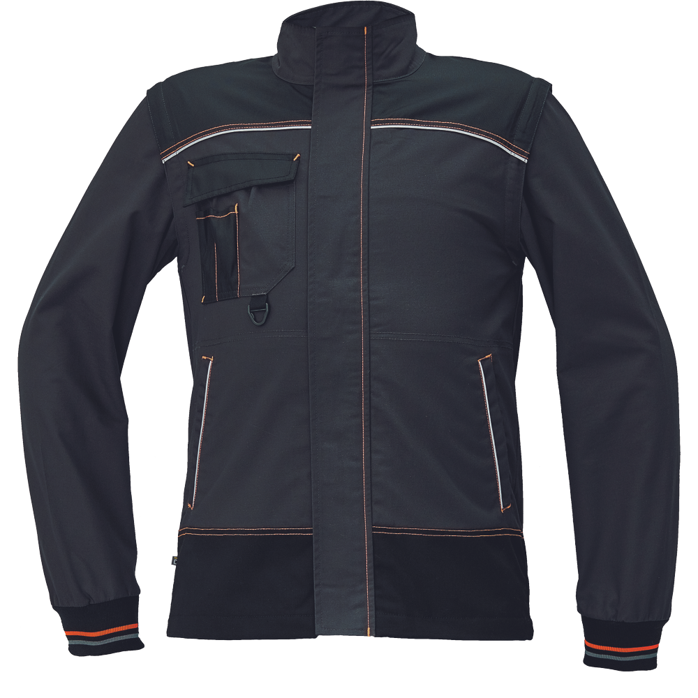 • férfi munkakabát állógallérral, modern mintázattal • 2 nagy oldalzseb, 1 multifunkcionális mellzseb • D-gyűrű, megerősítő rátét a vállakon Oxford 600D anyagból