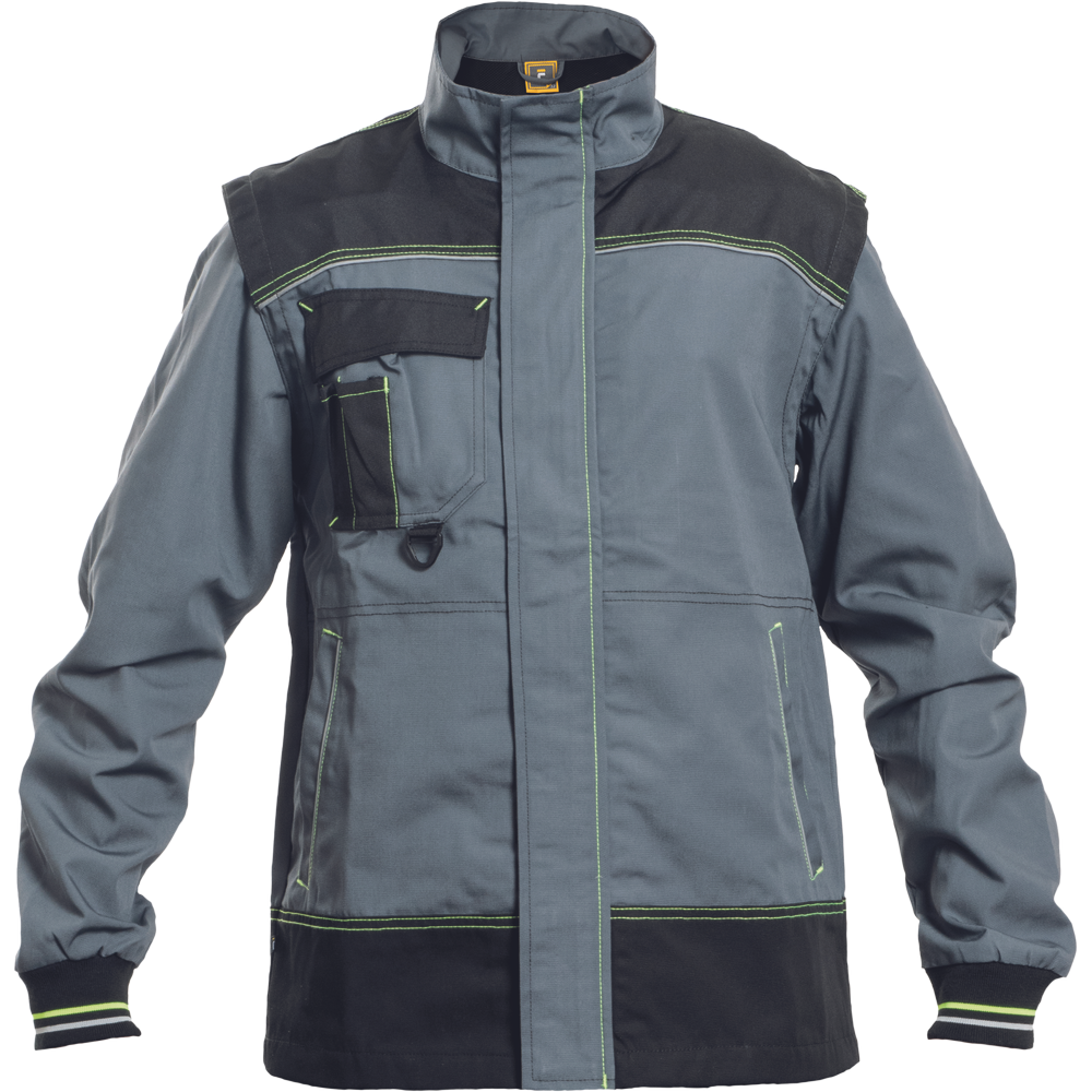 • férfi munkakabát állógallérral, modern mintázattal • 2 nagy oldalzseb, 1 multifunkcionális mellzseb • D-gyűrű, megerősítő rátét a vállakon Oxford 600D anyagból