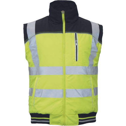 • kifordítható bélelt férfi mellény rugalmas derékkal • egyik oldalán jólláthatósági színekben, nyomtatott fényvisszavető csíkokkal • a mellény mindkét oldalán mell- és oldal zsebekkel • a vállrészen Oxford 600D anyagból készült megerősítő rátétekkel • fényvisszavető kiegészítőkkel díszített kivitel