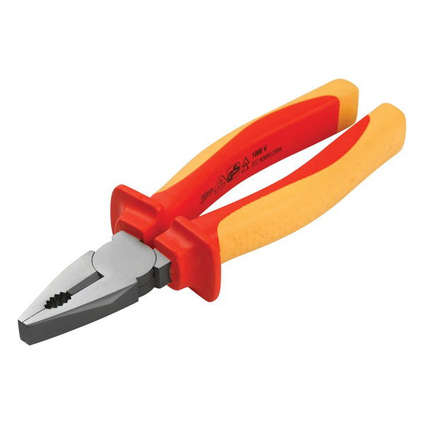 kombinált fogó, 200mm, szigetelt,1000V VDE, DIN ISO 5746, CV, duál piros/sárga nyél, akasztós szerszámtartó
