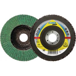 Lamellás csiszolótányér, kúpos, INOX, SMT 636 Supra, KLINGSPOR | Langbeschreibung: Kissebb ho csiszoláskor ,a multi-kötoanyagnak köszönhetoen. | Materialbeschreibung: zirkonkorund szemcsefajtamulti kötoanyagüvegszálszövet tányér