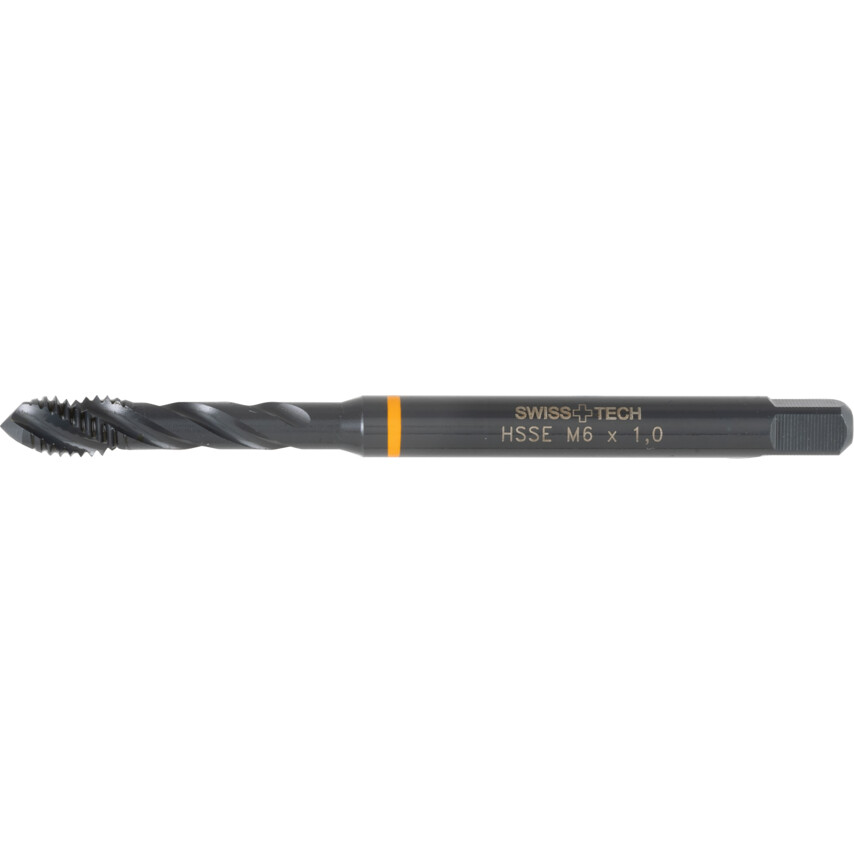 Swiss+Tech narancssárga gyűrűs csavart hornyú gépi menetfúrókLeírás