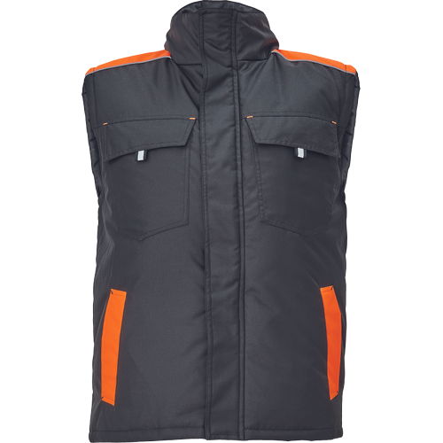 • férfi téli mellény • cipzárral záródó kialakítás tépőzáras hajtókával • 2 oldalzseb, 2 mellzseb • 1 belső mobiltelefon zseb • fényvisszavető szegélyek