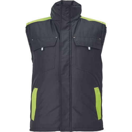 • férfi téli mellény • cipzárral záródó kialakítás tépőzáras hajtókával • 2 oldalzseb, 2 mellzseb • 1 belső mobiltelefon zseb • fényvisszavető szegélyek