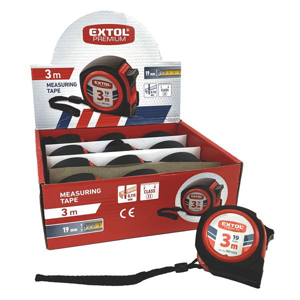 mérőszalag, gumírozott, 1 stoppos, 3m×19mm