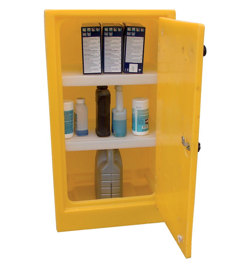 - Zárható műanyag tárolószekrény polcokkal.