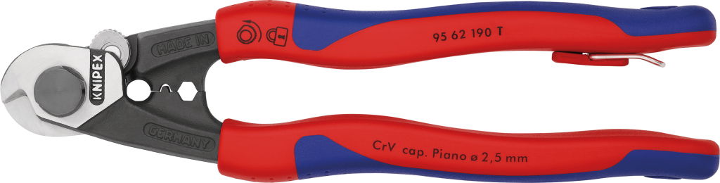 Drótkötél vágó olló ( bowden ), leesés ellen bizt. 190 mm, d=2,5-7 mm, véghüvely préselővel kétk.nyél