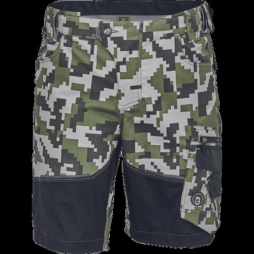 • férfi rövidnadrág innovatív • rugalmas Trifibetex® anyagból digitális terepmintával • 2 ékzseb • hátul 2 tépőzáras foltzseb • bal oldalon nagy multifunkciós zseb • jobb oldalon multifunkciós vonalzó • kés- és ceruzatartó • fém "D" gyűrű • rugalmas derék • fényvisszavető szegés • dekoratív tripla varrás kontrasztos színnel • kalapácstartó
