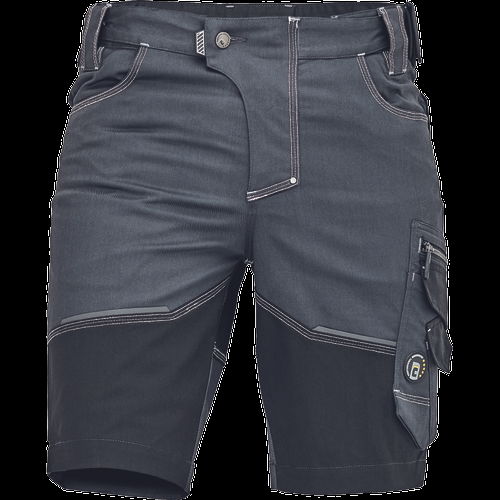 • férfi rövidnadrág innovatív, rugalmas Trifibetex® anyagból • 2 ékzseb • hátul 2 tépőzáras foltzseb • bal oldalon nagy multifunkciós zseb • jobb oldalon multifunkciós zseb vonalzónak • kés- és ceruzatartó • fém "D" gyűrű • rugalmas derék • fényvisszavető részletek • dekoratív tripla varrás kontrasztos színnel • kalapácstartó