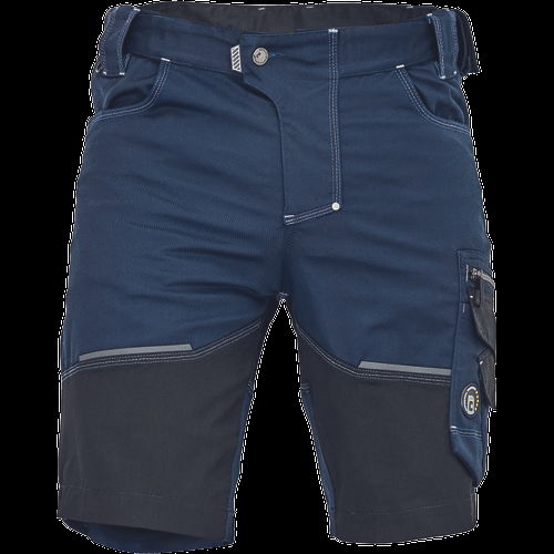 • férfi rövidnadrág innovatív, rugalmas Trifibetex® anyagból • 2 ékzseb • hátul 2 tépőzáras foltzseb • bal oldalon nagy multifunkciós zseb • jobb oldalon multifunkciós zseb vonalzónak • kés- és ceruzatartó • fém "D" gyűrű • rugalmas derék • fényvisszavető részletek • dekoratív tripla varrás kontrasztos színnel • kalapácstartó