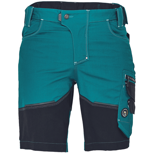 • férfi rövidnadrág innovatív, rugalmas Trifibetex® anyagból • 2 ékzseb • hátul 2 tépőzáras foltzseb • bal oldalon nagy multifunkciós zseb • jobb oldalon multifunkciós zseb vonalzónak • kés- és ceruzatartó • fém "D" gyűrű • rugalmas derék • fényvisszavető részletek • dekoratív tripla varrás kontrasztos színnel • kalapácstartó