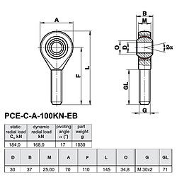 Pce-c-a-100kn-eb m30x2 rúd végű szemes csavar 184 000 n-ig pce-dfg n 100k-hoz, rögzítő anyával együtt