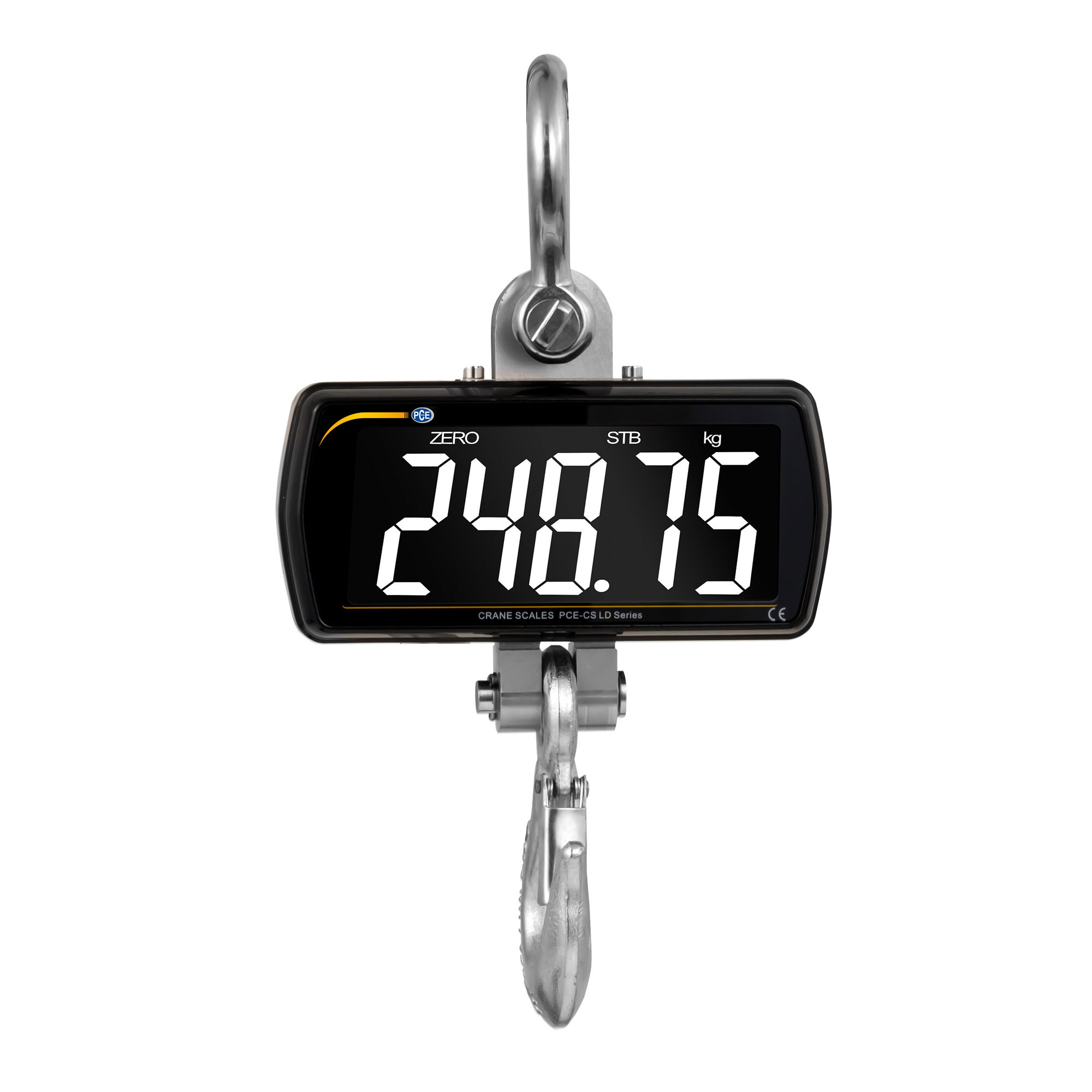 A daru mérlege 0 ... 300 kg. A tömeg 1 %-os pontosságával a daru mérleg különösen pontos mérőeszköz. A daru mérleg háza robusztus fémből készült. Ez azt jelenti, hogy a daru mérleg zord környezetben is használható. A daru mérleg kezelése a daru mérleg oldalán található kezelőpanelen keresztül történik. A billentyűzet például az egység beállítására vagy a pont visszaállítására használható. A 41 mm-es számjegymagassággal és az állítható háttérvilágítással a daru mérleg nagy távolságból és sötét környezetben is könnyen leolvasható. Ahhoz, hogy a daru mérleg nagy távolságból is kezelhető legyen, a szállítási terjedelemhez tartozik egy távirányító. A távirányítóval a daru mérleg további beállításait lehet elvégezni, mint például a háttérvilágítás, a totalizáló funkció vagy az automatikus kikapcsolás. A kiegészítő összegző funkcióval a daru mérlegén az egymás után rögzített súlyok összesítve jeleníthetők meg. A kg és lb tömegegységek mellett a daru mérleghez egy felhasználó-specifikus egység is beállítható. Ez a daru mérleg mért kg értékén alapuló szorzó megadásával történik. A daru mérleg energiatakarékos elektronikája kb. 45 órán keresztül folyamatos mérést tesz lehetővé. A daru mérleg opcionálisan ISO-kalibrálási tanúsítvánnyal is ellátható. Jellemzők: Mérési tartományok 0 ... 300 kg Távirányító a szállítási terjedelem része Különböző funkciók és tömegegységek Fém ház 41 mm-es számjegymagasság opcionálisan ISO-kalibrálási tanúsítvánnyalMűszaki adatok: Mérési tartomány Mérési tartomány [Max] 300 kg Felbontás [d] 0,05 kg Pontosság ±1 % mb. Általános műszaki adatok Mérési funkciók (kiegészítő információk) Összegző funkció, felhasználó által meghatározott egység Egység(ek) kg, lb Számjegyek mérete [SzxH] Magasság: 41 mm Működési idő 45 óra Működési idő További információk Mindig aktív háttérvilágítással 3. fokozatban Automatikus kikapcsolás ... 5 ... 60 percig. Fém ház Minimális terhelés [min] 2 kg Tárcsázási tartomány 0 ... 100 % v. Mb. Menü nyelve angol (US) Újratölthető elem/akkumulátor 4 x 1,5 V AA elem, alkáli-mangán Kapacitás 3000 mAh Üzemi feltételek 5 ... 35 °C , 0 ... 90 % r. H. Tárolási körülmények 5 ... 35 °C , 0 ... 90 % r. h. Méretek ( ) mm Tömeg 1300 gSzállítási tartalom: 1 x PCE-CS 300LD daru mérleg 1 x távirányító 6 x 1,5 V-os AA elem 1 x használati utasításFigyelem! A fenti gépi fordításban hibák, elírások előfordulhatnak, megértésüket köszönjük.