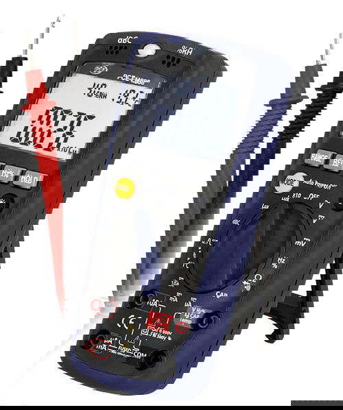 Ez a multiméter egy ideális választás mindenféle mérések elvégzéséhez, legyen az ellenállás, kapacitás, frekvencia, áram, feszültség, hőmérséklet, hang, tranzisztorteszt, fény mérése. Mindehhez rendelkezik auto-range és data-hold funkciókkal. - könnyen leolvasható háttérvilágításos kijelző - elemállapot kijelzés - robusztus gumírozott készülékház - automatikus mérési tartományválasztás Technikai adatok Hangnyomás méréstartomány 35 ... 100 dB felbontás 0,1 dB frekvenciatartomány 30 Hz ...10 kHz kiértékelés C-értékelés idő gyors pontosság ± 5 dB 94 dB hangnyomásnál, 1kHz Sinus jellel mikrofon Kondenzátormikrofon Fénymérés méréstartomány 4.000 / 40.000 Lux (20.000 Lux tartományban = kijelzés x10) tartománytúllépés "OL" (méréstartományt állítsa magasabbra) pontosság ± 5 %-a a mért értéknek + 10 számjegy reprodukálhatóság ± 2 % Hőmérséklet karakterisztika ±0,1 % / °C szenzor Szilicium fotódioda szűrővel Hőmérséklet és páratartalom mérés K-típusú méréstartomány -20 … +1300 °C felbontás 0,1 °C +400-ig, 1 °C felette pontosság ±3 % + 3 °C Belső hőmérséklet szenzor méréstartomány 0 … +50 °C felbontás 0,1 °C pontosság ±3 % + 3 °C Belső páratartalom szenzor méréstartomány 33 … 99 % r.F. felbontás 1 % r.F. pontosság ±3 % + 5 % r.F. Multiméter méréstartomány - DC-feszültség 400 mV / 4 / 40 / 100 / 250 V - AC-feszültség 400 mV / 4 / 40 / 100 / 250 V - DC-áram 400 / 4000 μA / 40 / 400 mA / 10 A - AC-áram 400 / 4000 μA / 40 / 400 mA / 10 A - ellenállás 400 Ω / 4 / 40 / 400 kΩ / 4 / 40 MΩ - kapacitás 50 / 500 nF / 5 / 50 / 100 μF - Frekvencia 5 / 50 / 500 Hz / 5 / 50 / 500 kHz / 10 MHz Felbontás - DC-feszültség 0,1 / 1,0 / 10 / 100 mV / 1 V - AC-feszültség 0,1 / 1,0 / 10 / 100 mV / 1 V - DC-áram 0,1 / 1 / 10 / 100 μA / 10 mA - AC-áram 0,1 / 1 / 10 / 100 μA / 10 mA - ellenállás 0,1 / 1 / 10 / 100 Ω / 10 kΩ / 1MΩ - kapacitás 10 pF / 0,1 / 1 / 10 nF / 0,1 μF - frekvencia 0,001 / 0,01 / 0,1 / 1 / 10 / 100 Hz / 1 kHz Pontosság - DC-feszültség ± 1 % (40 V-ig) ± 1,5 % (felette) - AC-feszültség ± 1,5 % (400 mV-ig) ± 1 % (40 V-ig) ± 1,5 % (100 V-ig) ± 2 % (250 V-ig) - DC-áram ± 1 % (40 mA-ig) ± 1,2 % (400 mA-ig) ± 2 % (10 A-ig) - AC-áram ± 1 % (40 mA-ig) ± 1,2 % (400 mA-ig) ± 2 % (10 A-ig) - ellenállás ± 1,5 % (400 Ω-ig) ± 1,5 % (400 kΩ-ig) ± 2 % (4 mΩ-ig) ± 2,5 % (40 mΩ-ig) - kapacitás ± 5 % (50 nF-ig) ± 3 % (50 μF-ig) ± 4 % (100 μF-ig) - frekvencia ± 1,2 % (500 kHz-ig) ± 1,5 % (10 MHz-ig) Diódateszt 2,8 V DC / 1,4 mA Átmenő riasztás 50 Ω alatt Túlfeszültségvédelmi kategória CAT II 600 V / CAT III 300 V Általános tulajdonságok kijelző LCD, 3 4/5-számjegyes Túlszaladás kijelzése "OL" Mérési sebesség Kb. 3x másodpercenként Szükséges hőmérséklet a megadott pontosságokhoz 23 °C ± 5 °C / 70 % r.F. Környezeti feltételek 0 ... +40 °C / 70 % r.F. Tárolási feltételek -10 ... +60 °C / 80 % r.F. Áramellátás 1 x 9 V elem Készülék méretei 170 x 78 x 48 mm Tömeg 335 g Szállítási tartalom: 1 multiméter, 1 pár mérőkábel, 1 k-típusú hőelem, 1 elem, 1 használati útmutató Ide kattintva megtekintheti a műszer kalibrálási lehetőségeit.